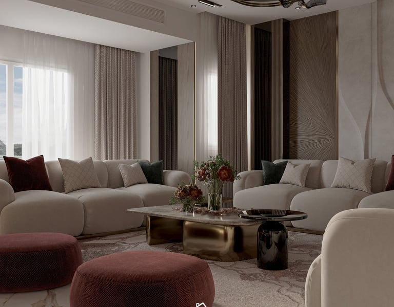 اكتشف كيف نحول رؤيتك إلى واقع ملموس من خلال خبرتنا العميقة في ابتكار تصاميم داخلية فاخرة تعكس أسلوبك الفريد، وتضفي لمسة جمالية استثنائية على مساحاتك الخاصة لتمنحك تجربة معيشية يومية أكثر رقيًا وإلهاماً."